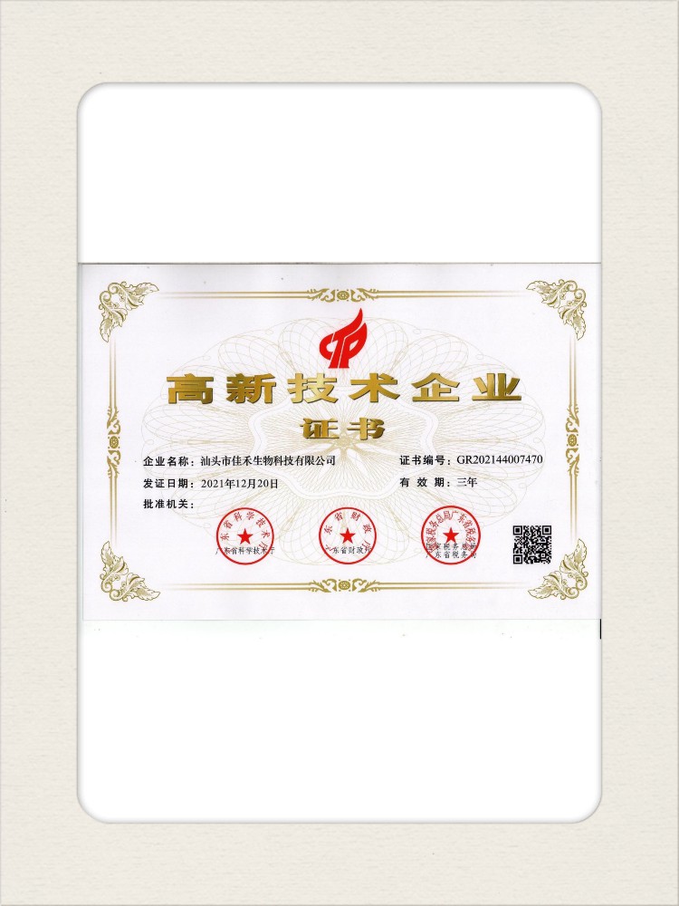 汕頭佳禾生物科技有限公司是一家致力于氨基酸及其衍生物研發(fā)、生產(chǎn)和銷售的國家高新技術(shù)企業(yè),先后通過了國家藥品GMP認(rèn)證,ISO9001質(zhì)量體系認(rèn)證、ISO14001環(huán)境管理體系認(rèn)證。目前,公司擁有“廣東省專精特新中小企業(yè)”、“廣東省氨基酸產(chǎn)品工程技術(shù)研究中心”、“汕頭市生物發(fā)酵工程技術(shù)研究開發(fā)中心”、“汕頭市知識產(chǎn)權(quán)優(yōu)勢企業(yè)”、“多項國家發(fā)明專利”、“廣東省守合同重信用企業(yè)”等多項資質(zhì)和榮譽(yù),旗下“佳禾牌”系列產(chǎn)品已成為原料藥行業(yè)知名品牌。 新泰市佳禾生物科技有限公司成立于2012年8月,注冊資金2億元,公司位于山東泰安新泰市新汶工業(yè)園區(qū),是國 家級高新技術(shù)企業(yè)、山東省“專精特新”企業(yè)、山東省制造業(yè)單項冠軍企業(yè)、泰安市科技型中小企業(yè)、泰安市農(nóng)業(yè)產(chǎn)業(yè)化龍頭企業(yè)、中國生物發(fā)酵產(chǎn)業(yè)協(xié)會理事單位。